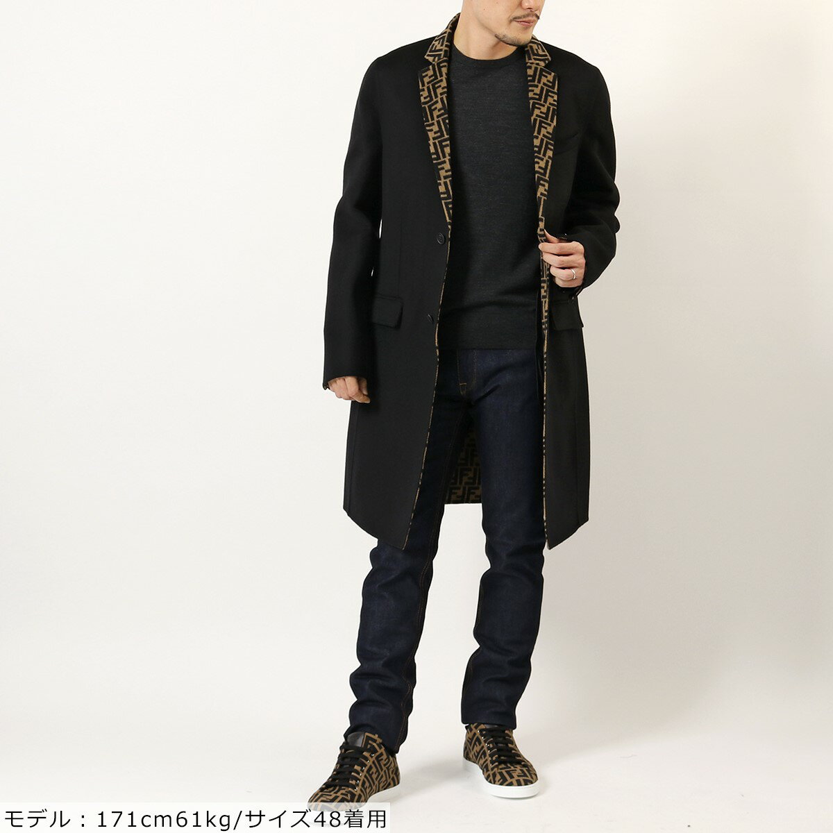 FENDI(フェンディ)の他商品一覧はこちら ITEM アイテム≫メンズ≫アウター≫コート MODEL FF0251 A4LJ COLOR F0QE1/ブラック×ブラウン SIZE(cm) 【46】肩41着丈96身幅46袖66 【48】肩42着丈97.5身幅48袖66.5 【50】肩43着丈99身幅50袖67 ⇒サイズガイドはこちら ※サイズの若干の誤差はご了承ください。